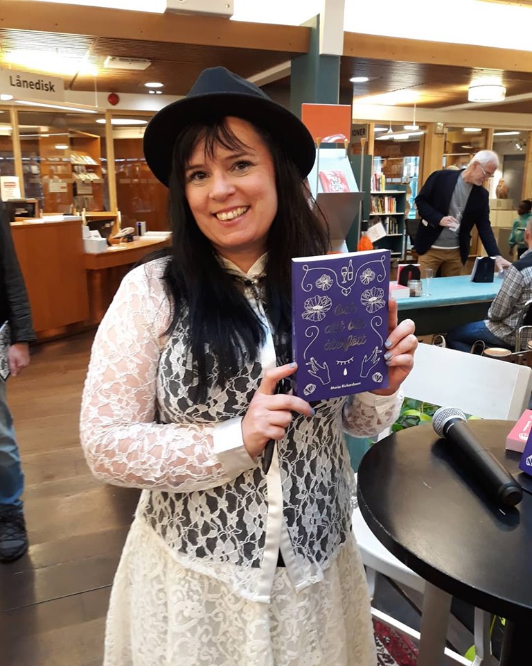 Men här nedan kommer i alla fall en bild som togs på releasen av min författarkollega Karin M.Karlberg.