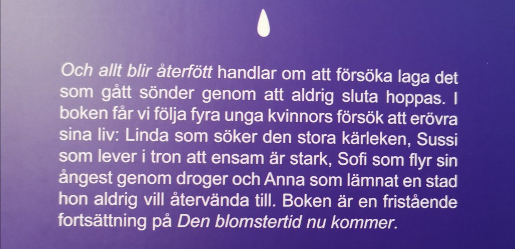Och allt blir återfött är beställd till butiken, och de exemplar av Den blomstertid nu kommer som har funnits i butiken har sålt slut, så den boken ska beställas om. 😀