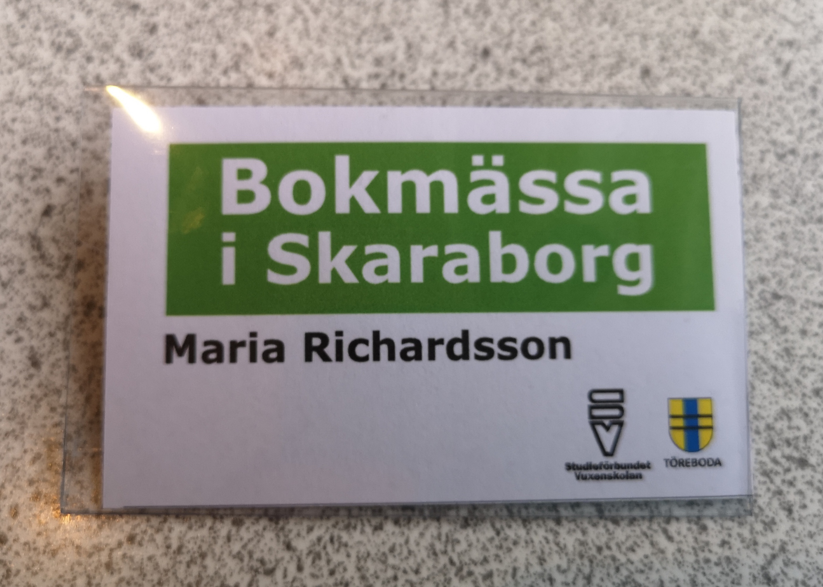 Publicerat den 19 oktober, 2019 av Marias FörfattarbloggFörsta dagen på Skaraborgs Bokmässa avklarad. Premiär för min nya t-shirt. Den fina namnskylten. Imorgon kör vi igen! Dela detta: Dela på X (Öppnas i ett nytt fönster) X Dela på Facebook (Öppnas i ett nytt fönster) Facebook Skriv ut (Öppnas i ett nytt fönster) Skriv ut Gilla Laddar in … Relaterade