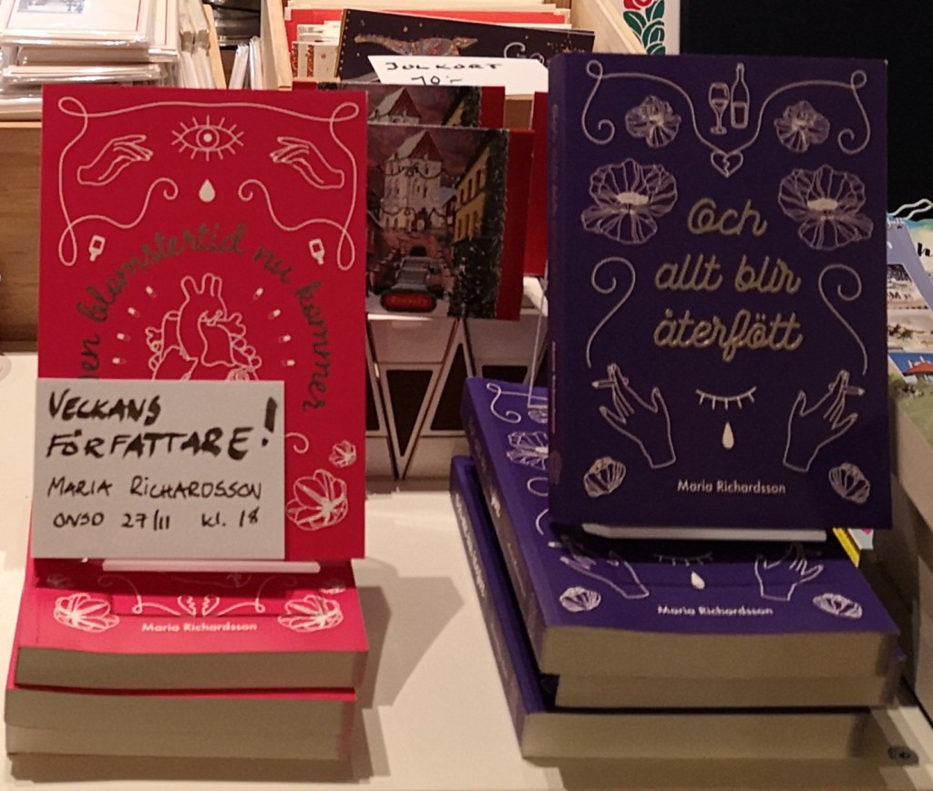 Hemkommen från en fantastiskt rolig författarkväll med Maria Richardsson. Jag lyssnade, fascinerades av och beundrade denna författare och åkte hem med två böcker till (den jag verkligen väntar på kommer ut i mars) och är sååå inspirerad, vill bara skriva skriva skriva. Tack för en riktigt härlig kväll Maria och Anna Ekberg / Ellens bokcafé i Ronneby