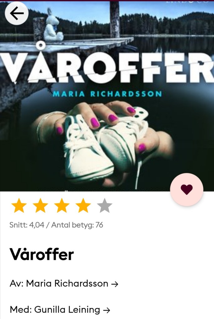 Plötsligt ser jag att Våroffer nu har 76 betygsättningar på Storytel och att betygsnittet nu ligger på 4.04.