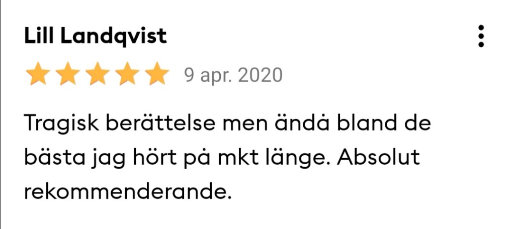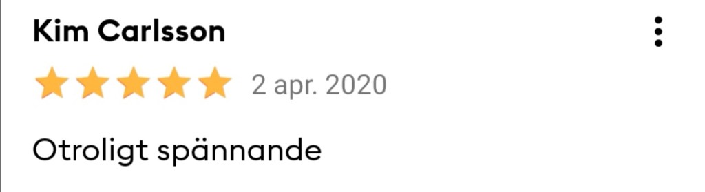 För att visa er vad jag menar när jag säger att det är lättare att skriva böcker nu så lägger jag ut några av de recensioner jag fått på Våroffer på Storytel. Tänk er in i min situation, hur det känns att få läsa detta. Jag tror ni inser vilken energikick det ger!