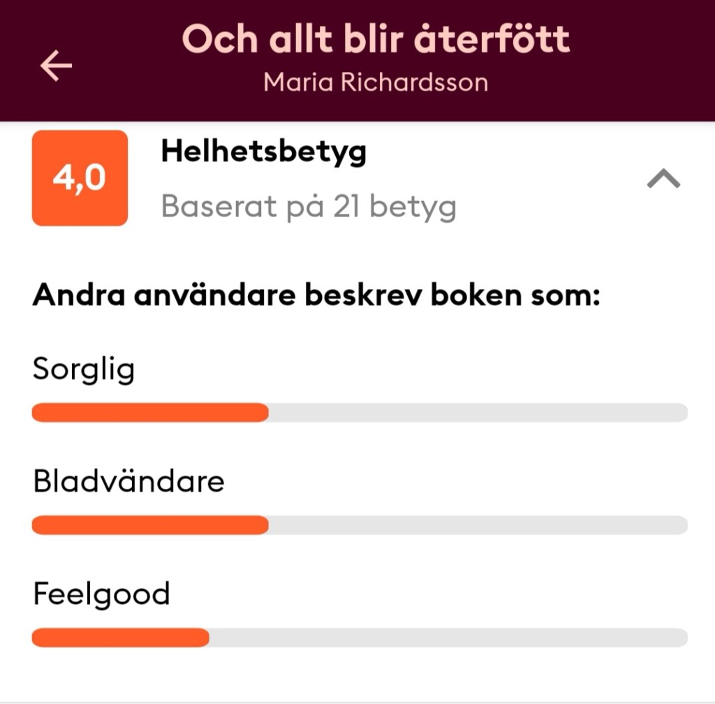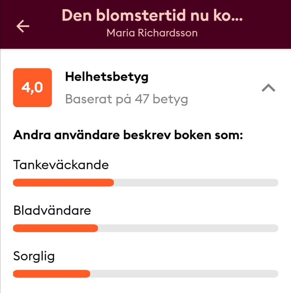 Mina två böcker i Blomstertid-serien ligger båda på 4,0 som helhetsbetyg.