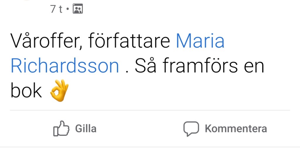 Scrollar på Facebook. Eftersom jag är medlem i olika ljudboksgrupper dyker det upp nya inlägg därifrån. Så plötsligt detta inlägg, från en för mig okänd person: