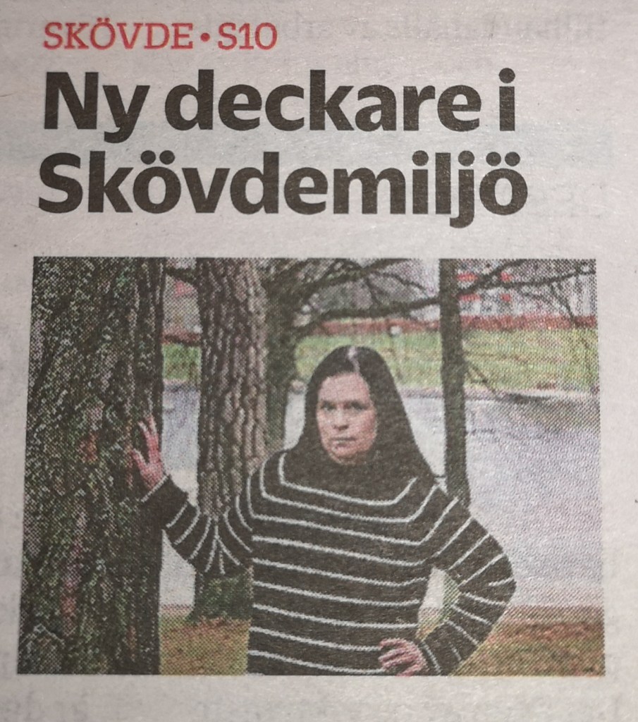 Jag tycker jag ser lite arg ut, men jag fick order om att inte le på bilden. Och det är klart att med tanke på rubriken Jakt på en seriemördare så passar det nog betydligt bättre med en bild där jag ser lite bister ut. Och bilden är ju väldigt passande i sig, den är tagen i Boulognerskogen i Skövde, och det är just här som Carl Brännlund hittas skjuten i kapitel 1 i Gryningsdåd.