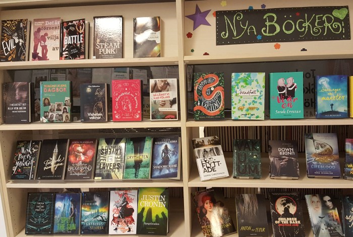 Jag hittade avdelningen där de hade ungdomsböcker och kolla in vad snyggt skyltad den var bland de nya böckerna: