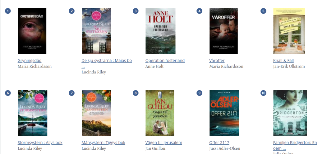 Så här ser det ut just nu på bibliotek Mellansjös e-bokstopplista: