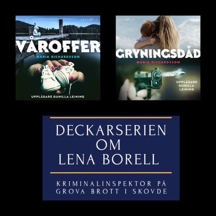 Men Gunilla Leining har också läst in mina två deckare Våroffer och Gryningsdåd.