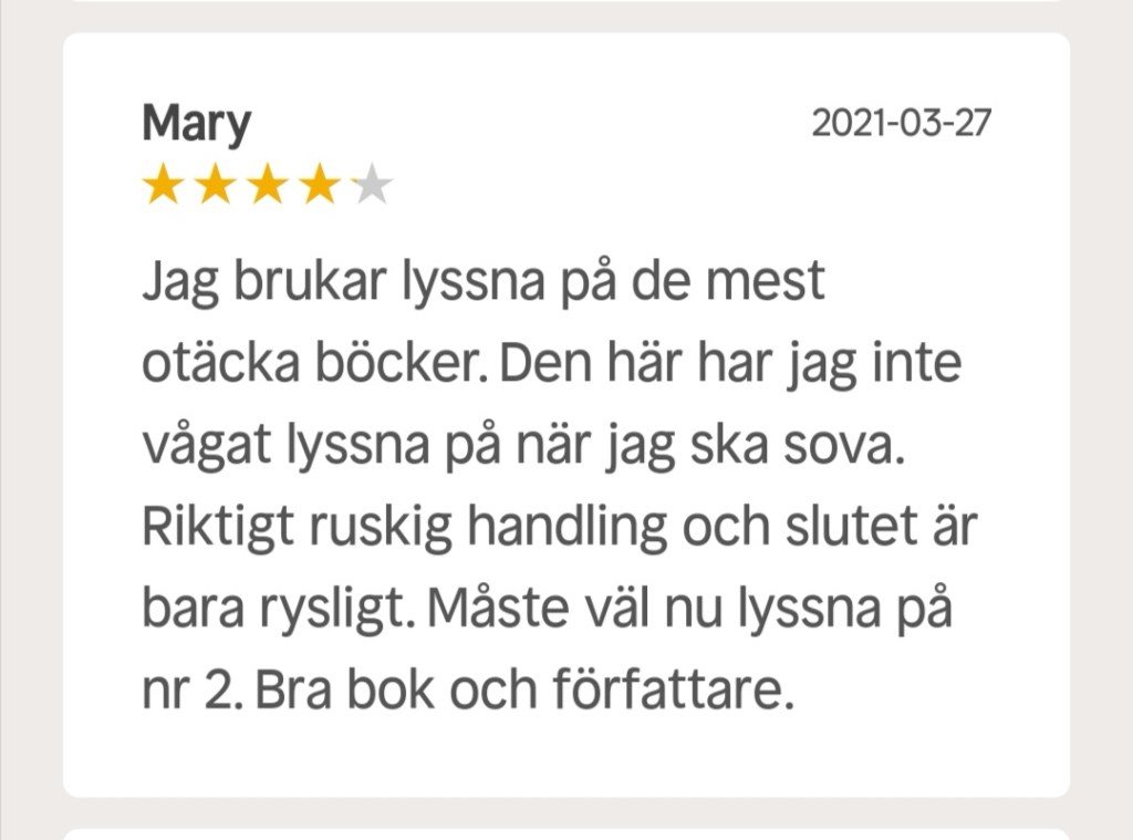 Jag hade ingen aning om ifall boken skulle uppfattas som otäck eller inte, verkligen ingen aning. Men nu kan jag konstatera att många nog tycker det. Det har jag nämligen läst i recensioner och läsarkommentarer, som i den här recensionen av Våroffer på Nextory: