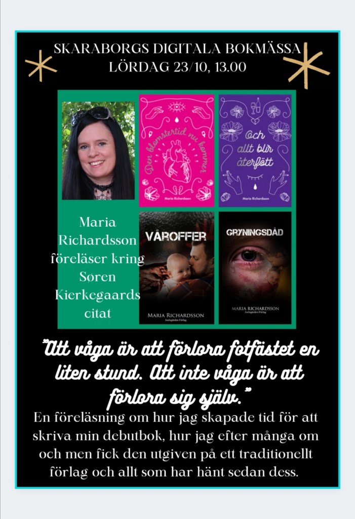 På lördag klockan 13 kan du kolla in min föreläsning om mitt skrivande och mina böcker.