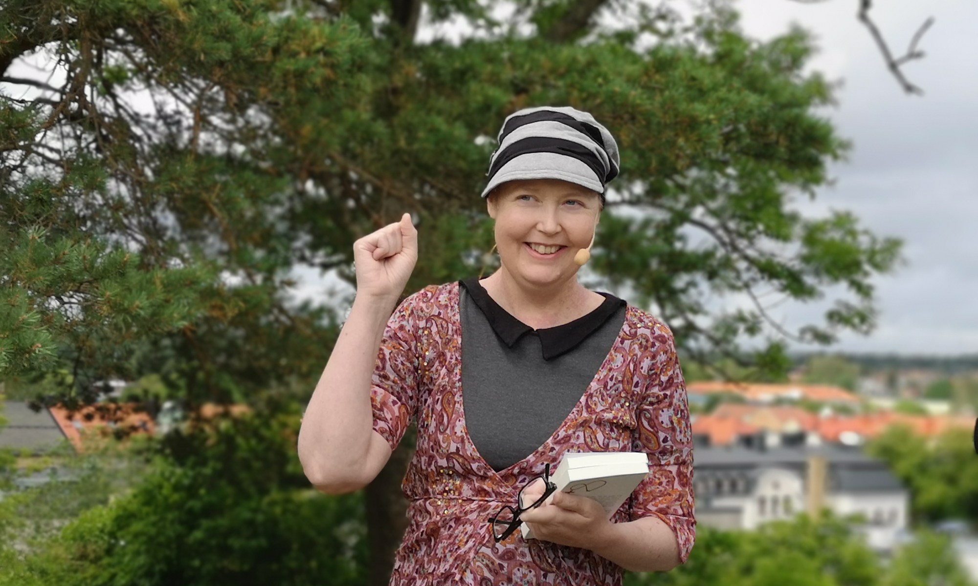 Vi befann oss vid trappan i Skövde Kulturhus, och Stadsbibliotekets personal stod bredvid med bubbel i glaset redo att skåla. Det började med att Petronella blev intervjuad av Lena Wellman, bibliotekarie, och hade ett fysiskt exemplar av ljudboken i handen, släppte den i marken och så var det med det! Och så blev det trumpetfanfar! Och sedan också ett avsnitt om hennes bok i Bokpendlarna, Stadsbibliotekets egna podd.