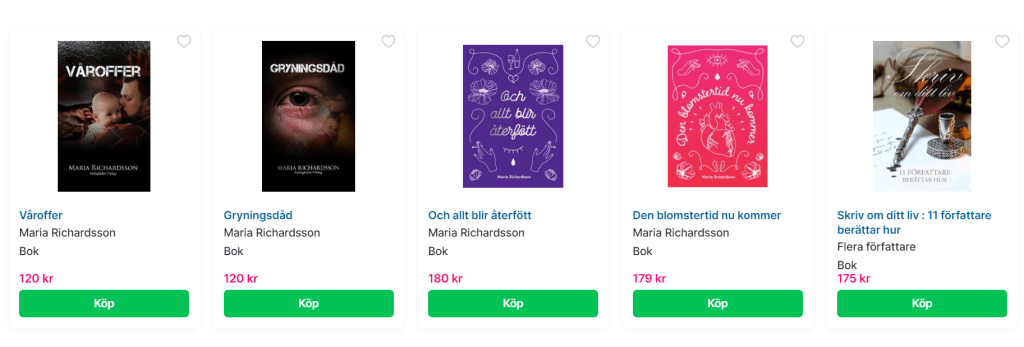 Sök på önskad titel när du klickat in på länken så kommer min bok upp! 🙂
