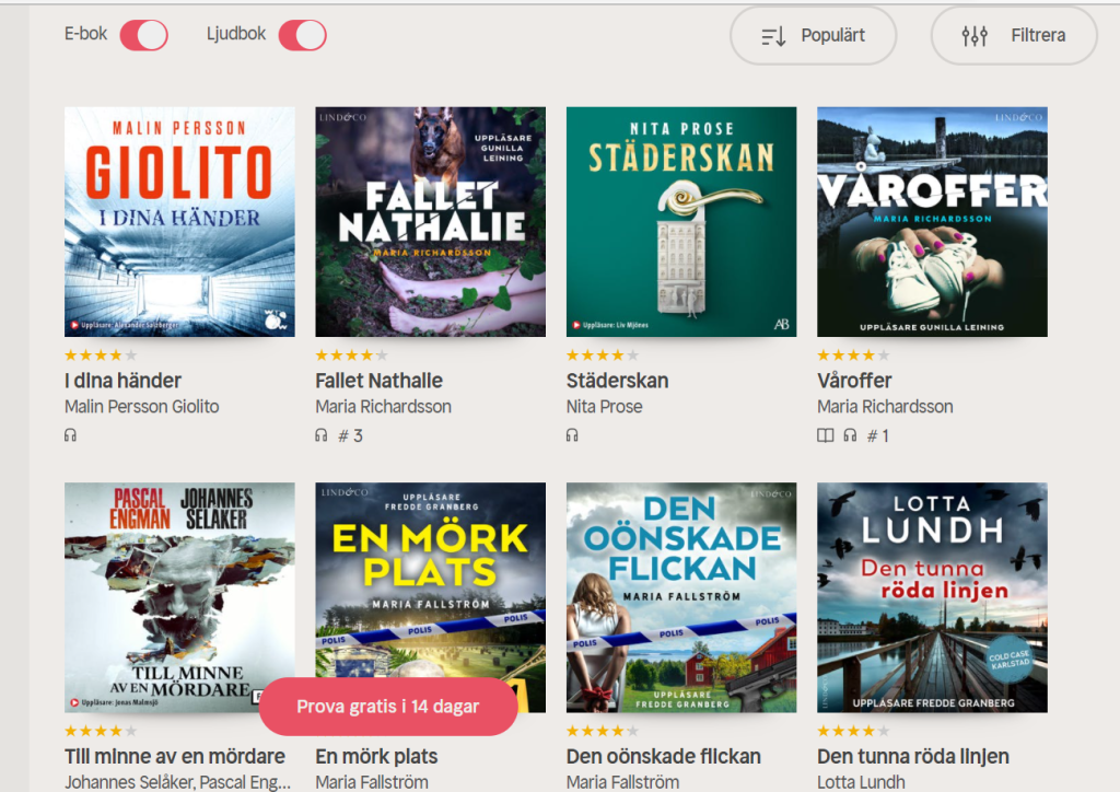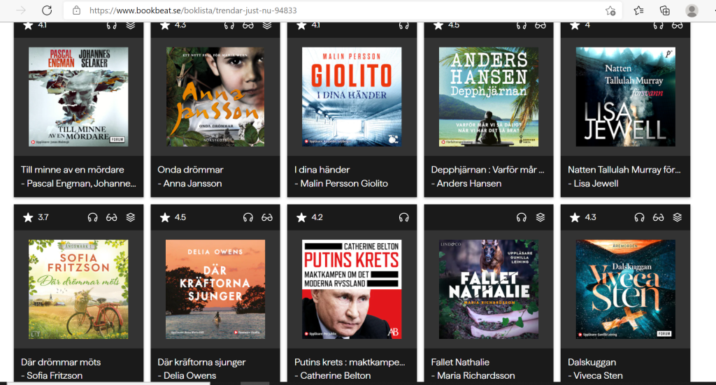 Ännu inget betyg på BookBeat, men Fallet Nathalie har i skrivande stund 4,0 som snittbetyg på Storytel och 4,3 i snittbetyg på Nextory!!!