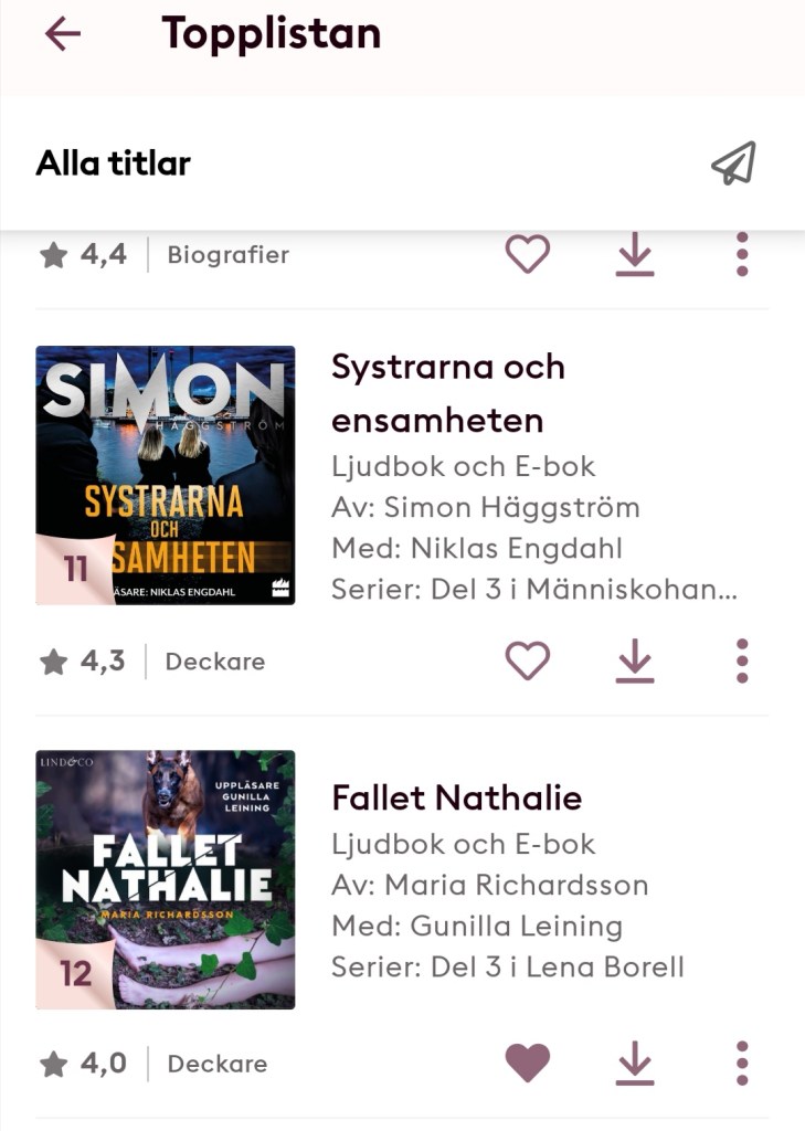På Storytels deckartopplista ligger Fallet Nathalie nu på nionde plats, men det fantastiska är också att Gryningsdåd ligger som nummer tolv och Våroffer som nummer tretton!