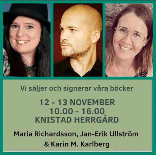 Jag och Karin M. Karlberg kommer att befinna oss på plats i författartältet både under lördagen och söndagen, och på söndagen får vi dessutom sällskap av Jan-Erik Ullström!