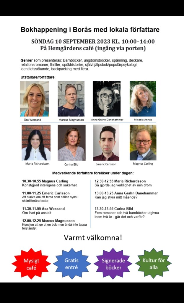 Bra tillfälle för den som vill lyssna på mig eller kolla in mina böcker.