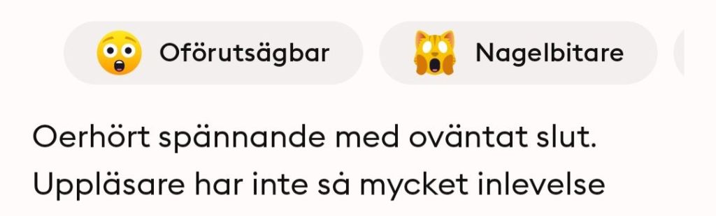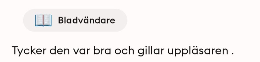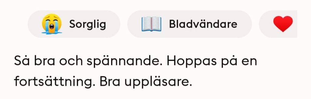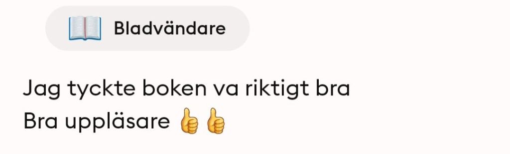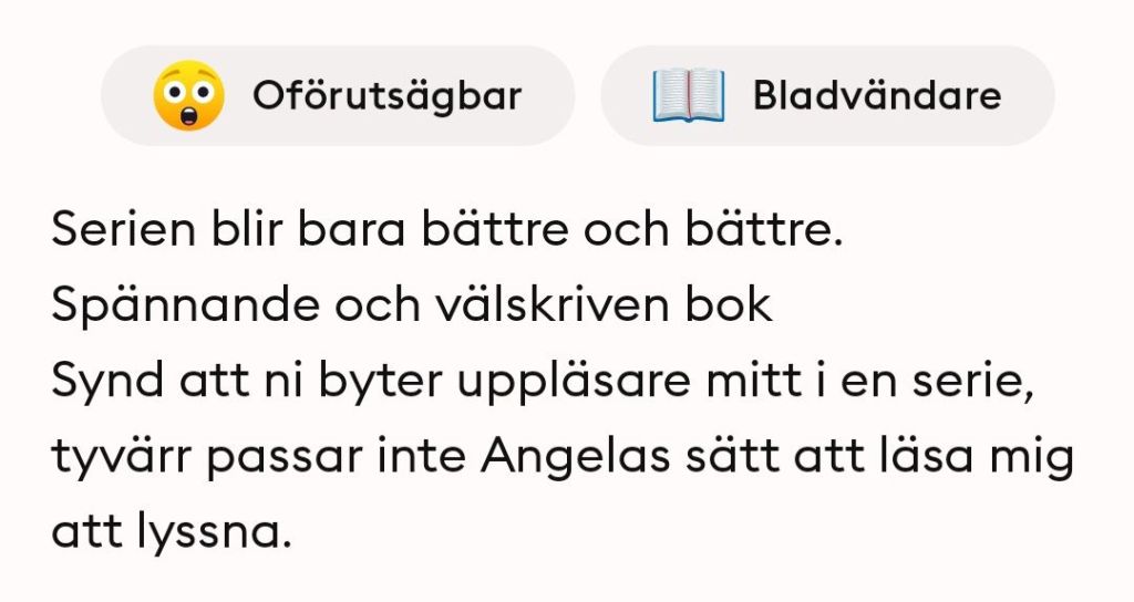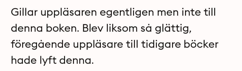 Här kommer några olika kommentarer gällande just uppläsaren från olika personer som har lyssnat på ”Skärsår”: