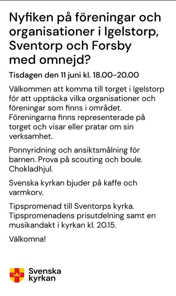 Den 11 juni anordnas ”Kul på torget” i Igelstorp. Igelstorp är en liten ort belägen mittemellan Skövde och Tibro, och eftersom jag bor där kommer jag finnas på plats under detta evenemang.