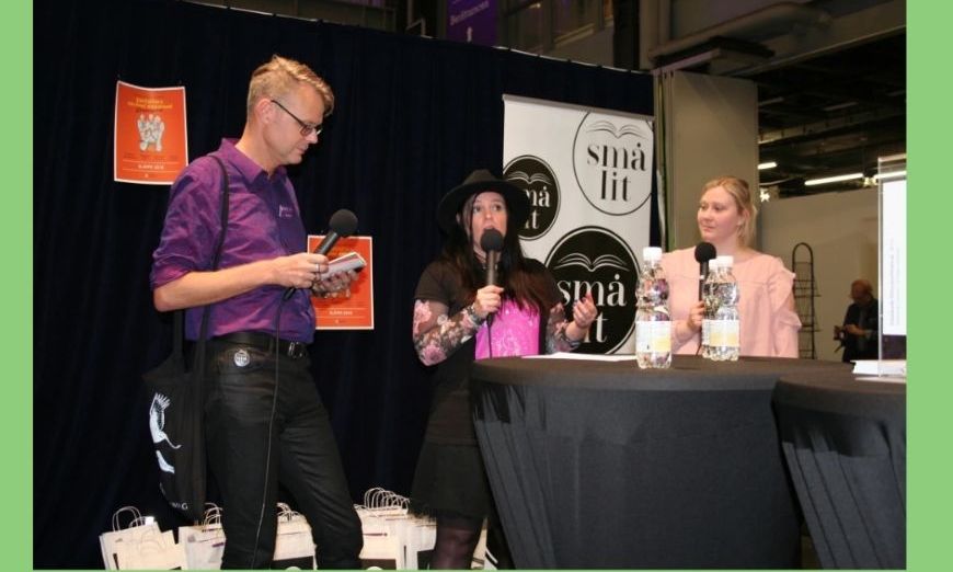 Bilden ovan är från mitt första författarsamtal på bokmässan i Göteborg. Året var 2017 och ”Den blomstertid nu kommer” var nysläppt. Jag och Emma Johansson, författare till ”Papperssjälar”(släppt på Vox by Opal) samtalade med Björn Kohlström i SmåLits monter på temat ”Kärlek, fasader och hemligheter – att skriva för unga vuxna.”