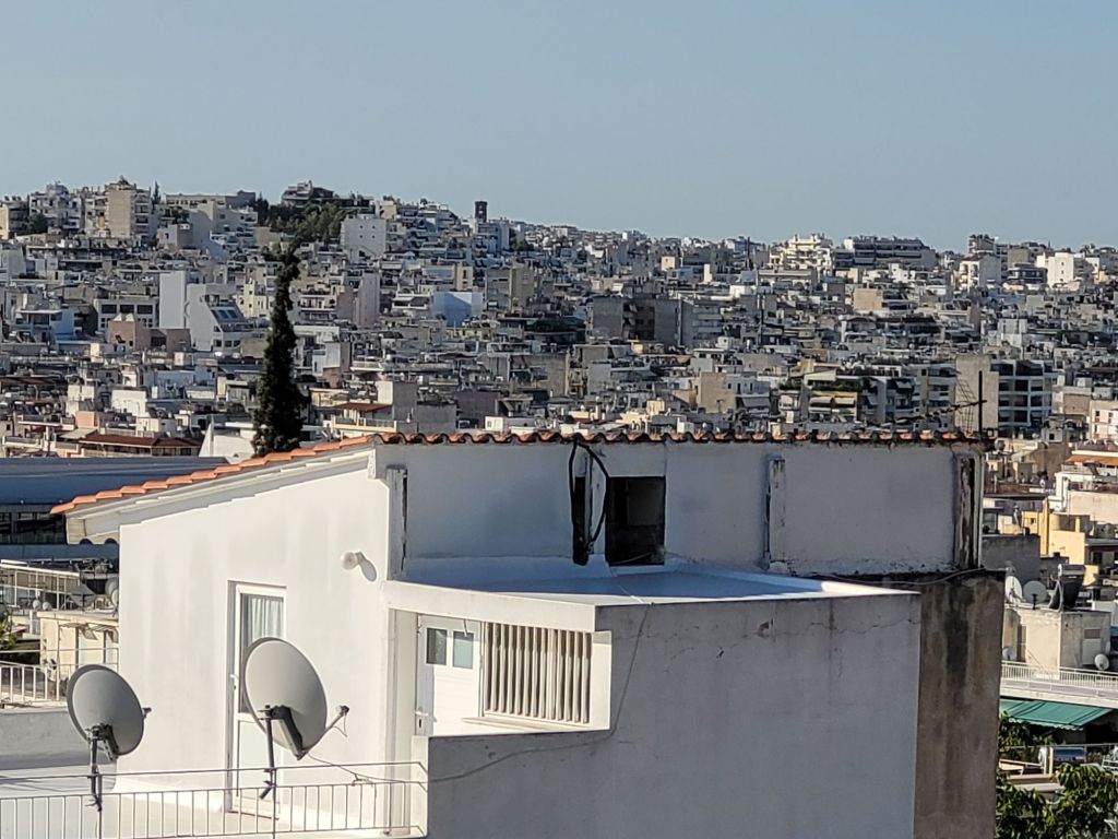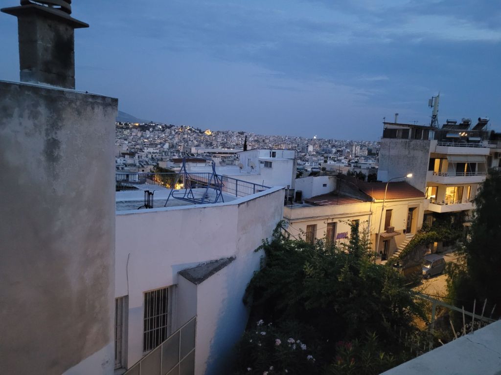 På innergården fanns en smal spiraltrappa och däruppe (alltså på själva taket till huvudbyggnaden) fanns ett litet hus/terrasslägenhet men också en riktigt stor terrass med fantastisk utsikt över stora delar av Aten!