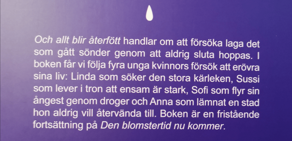 Här kan du kolla in boken på förlagets hemsida, eller provbläddra i den: http://www.lindskogforlag.se/och-allt-blir-aterfott_start.php